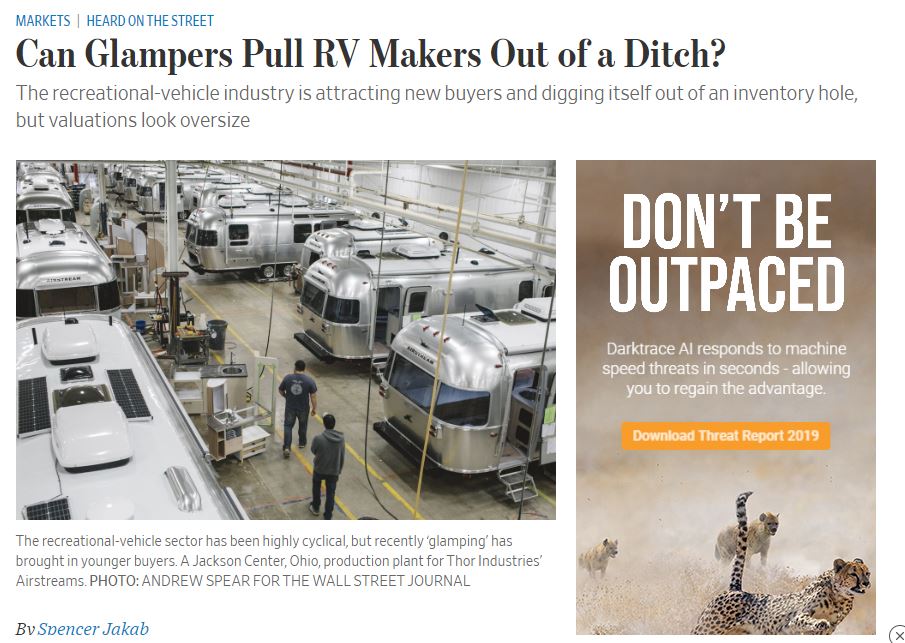 I wrote about the RV industry again. It’s a fascinating business, and apparently I’m not the only one who thinks so if online reader engagement is any indication.